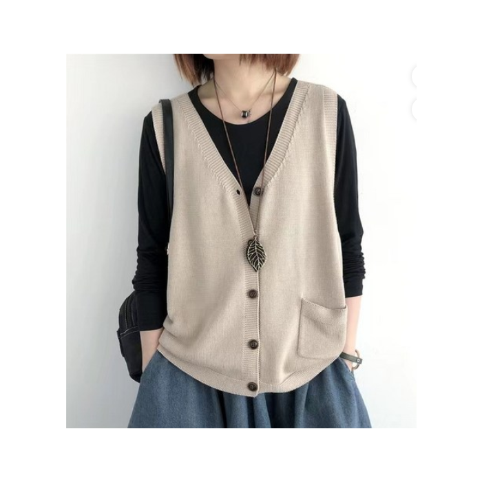 SAHINER 봄가을 여성 루즈핏 브이넥 버튼 니트 베스트 > 패션의류/잡화