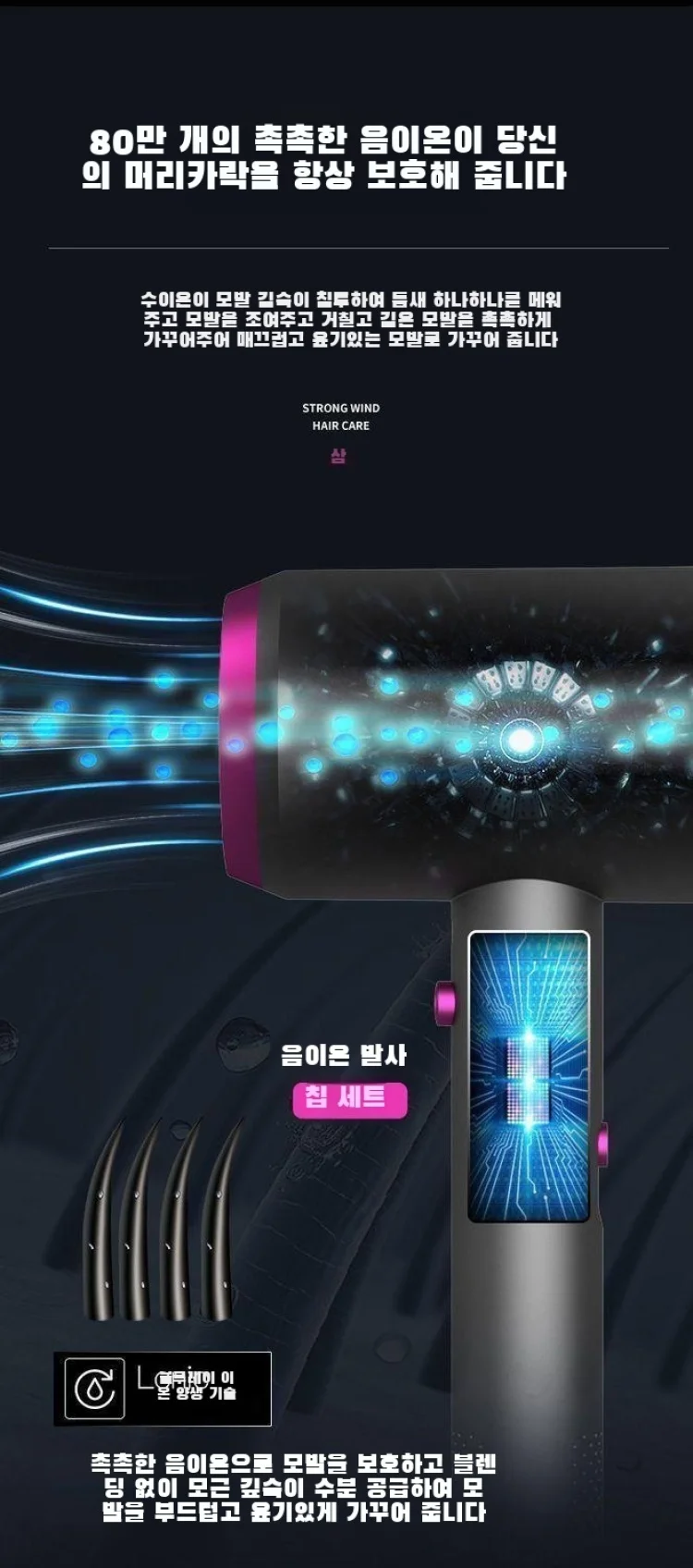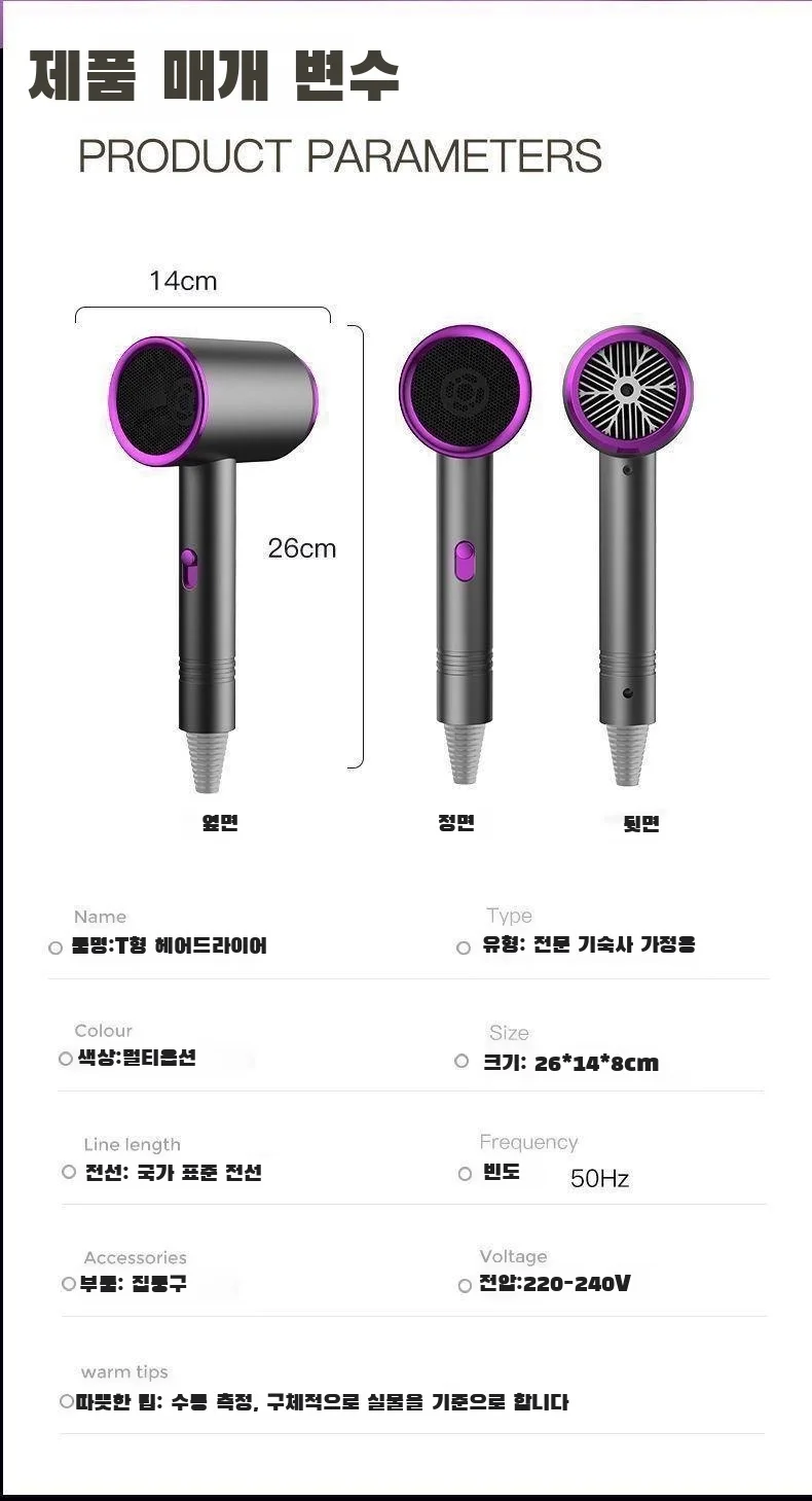 독일 전기 드라이기 가정용 학생 기숙사 음이온 헤어케어 대풍속건 냉열 크기 출력 뮤트