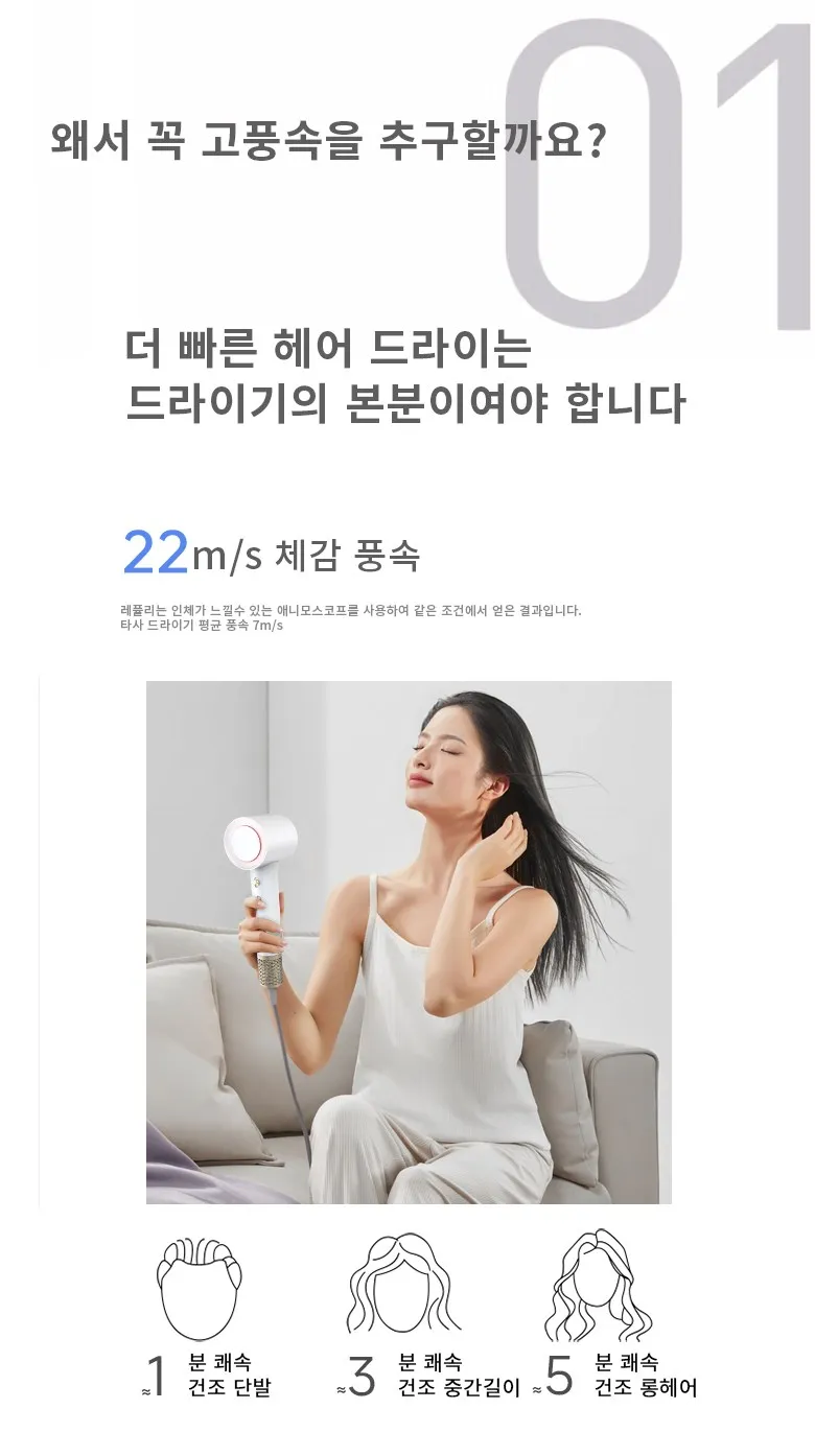 레퓰리 음이온 고속 헤어 드라이어 BLDC 드라이기 화이트