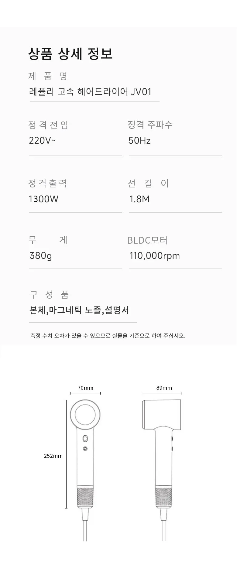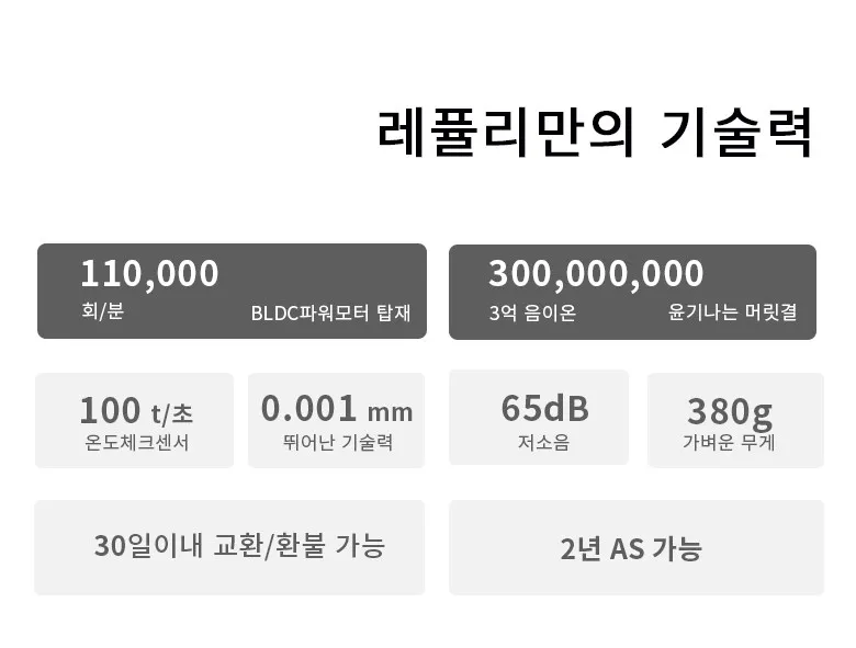 “레퓰리 음이온 고속 헤어 드라이어 BLDC 드라이기 화이트”의 첫 상품평을 남겨주세요