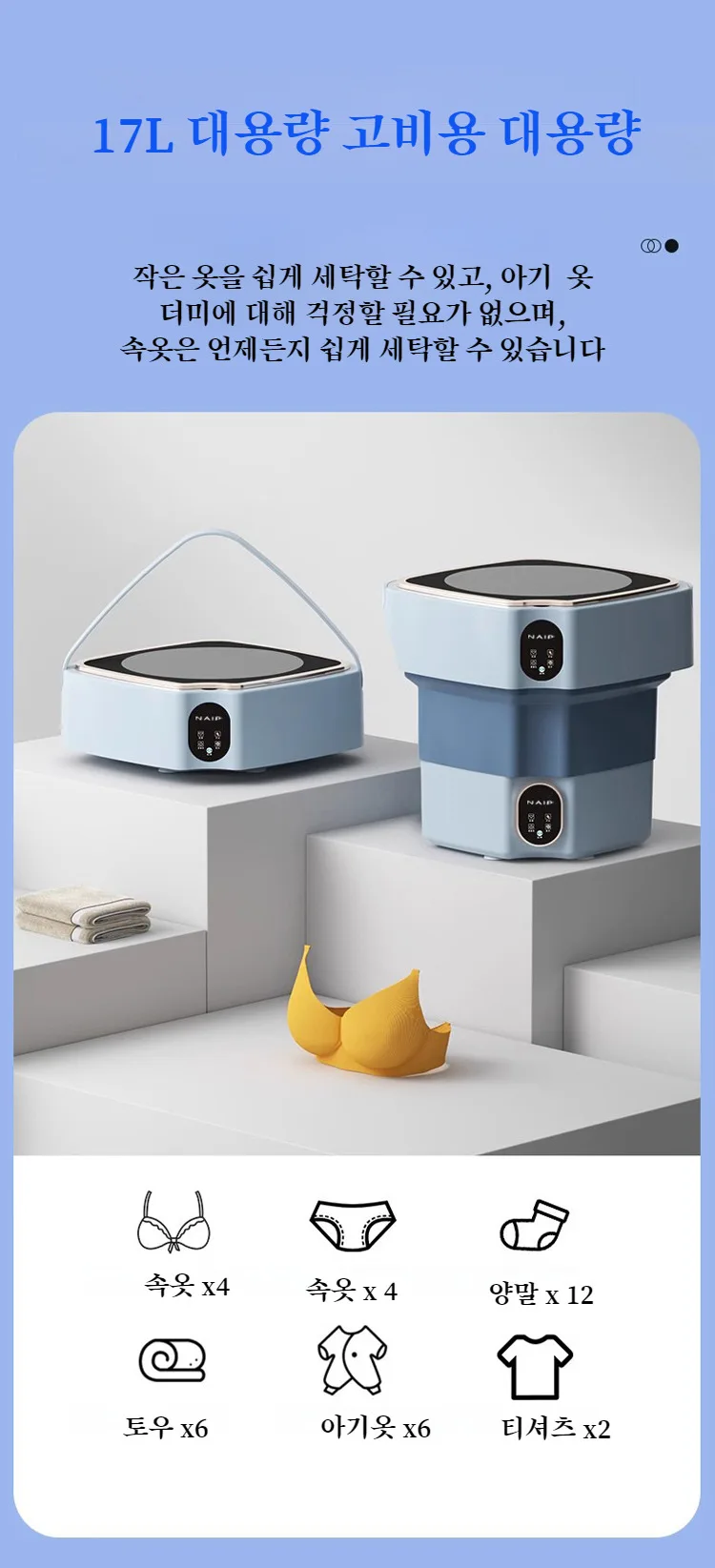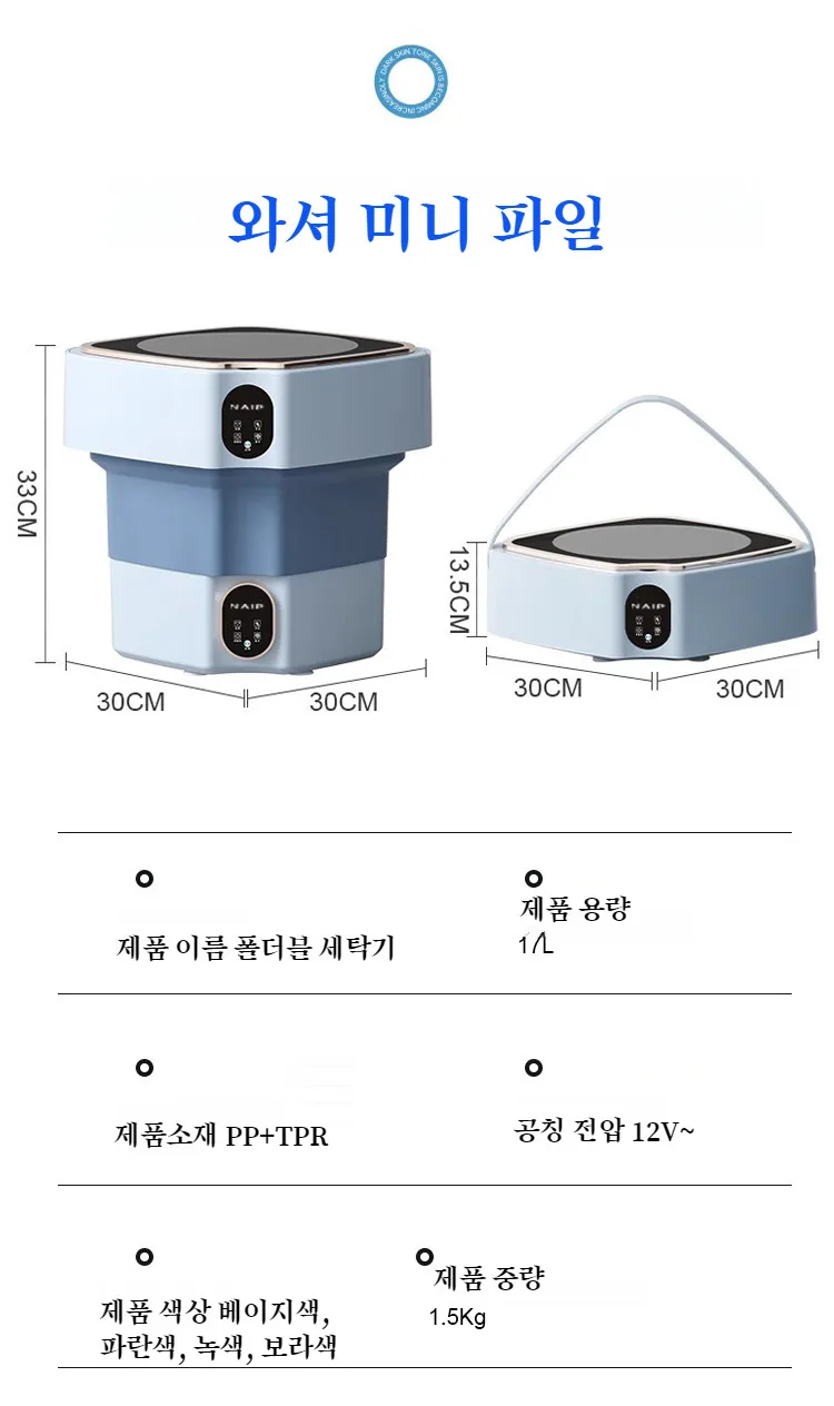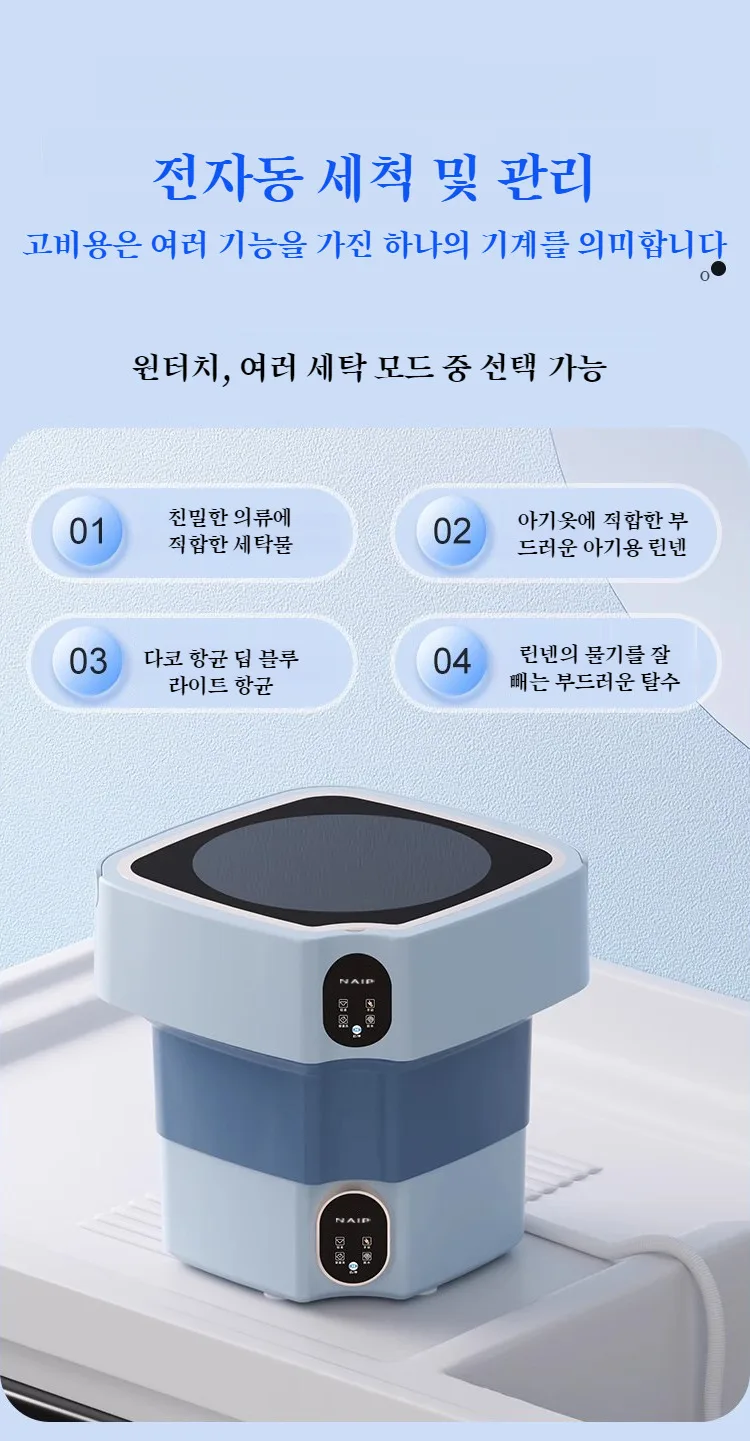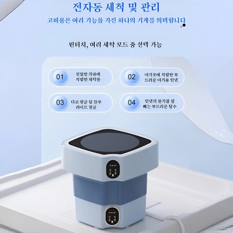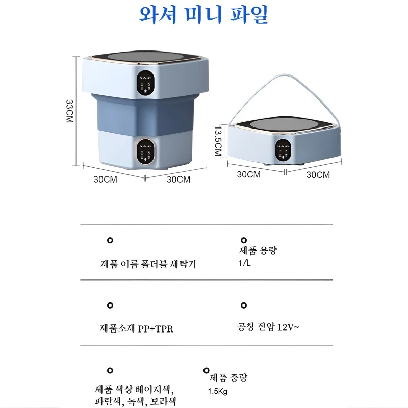 블루라이트 항균 대용 접이식 세탁기 속옷 유아용 기숙사 소형 미니 세탁기 대용 세탁기 소형 세탁기