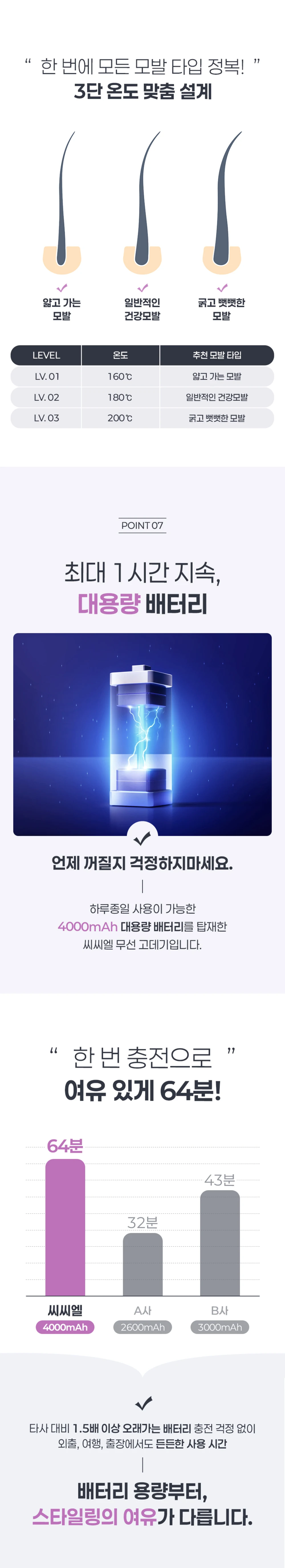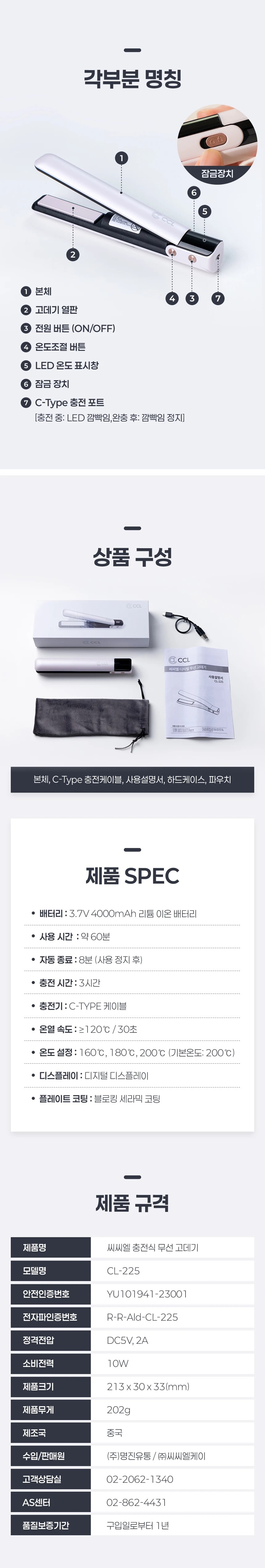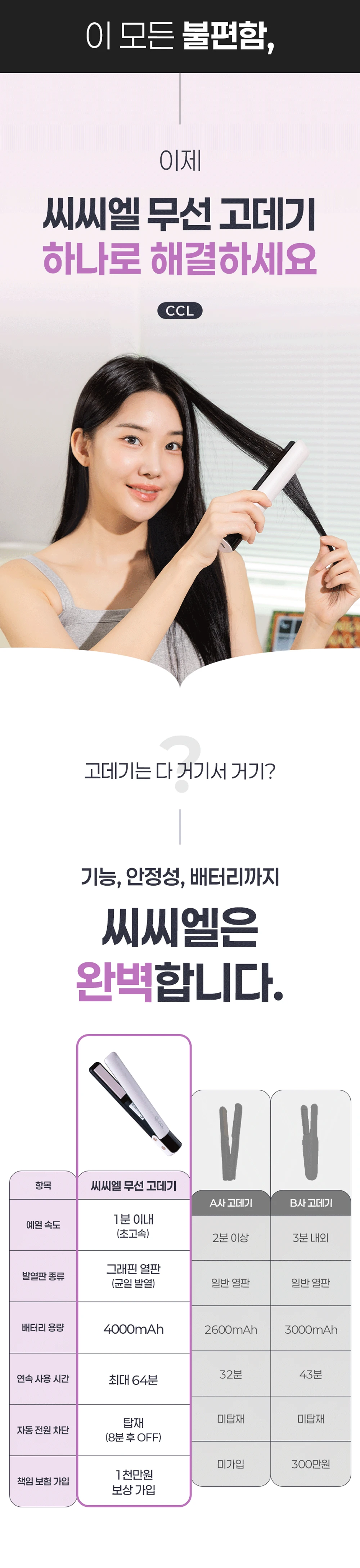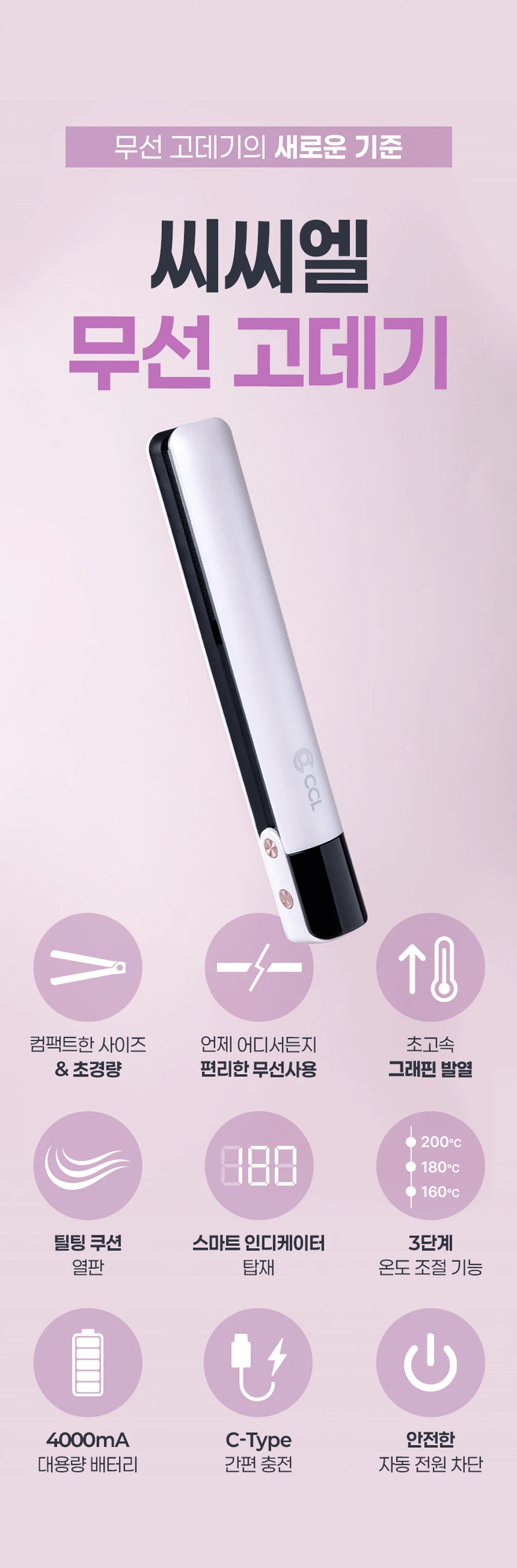 씨씨엘 무선 고데기 휴대용 여행용 미니 헤어 매직기 CL-225