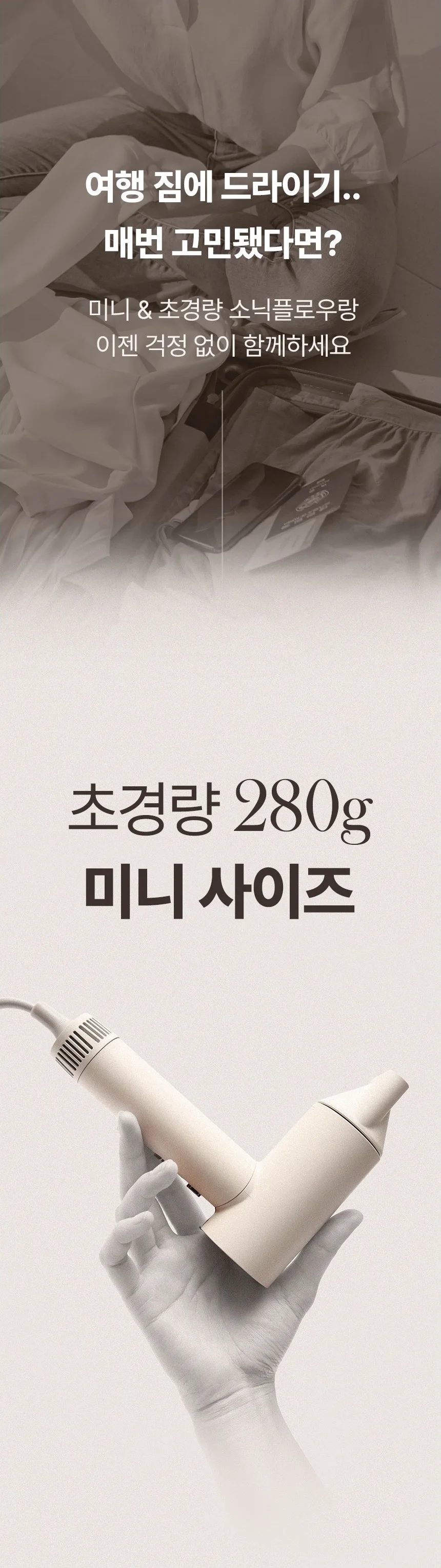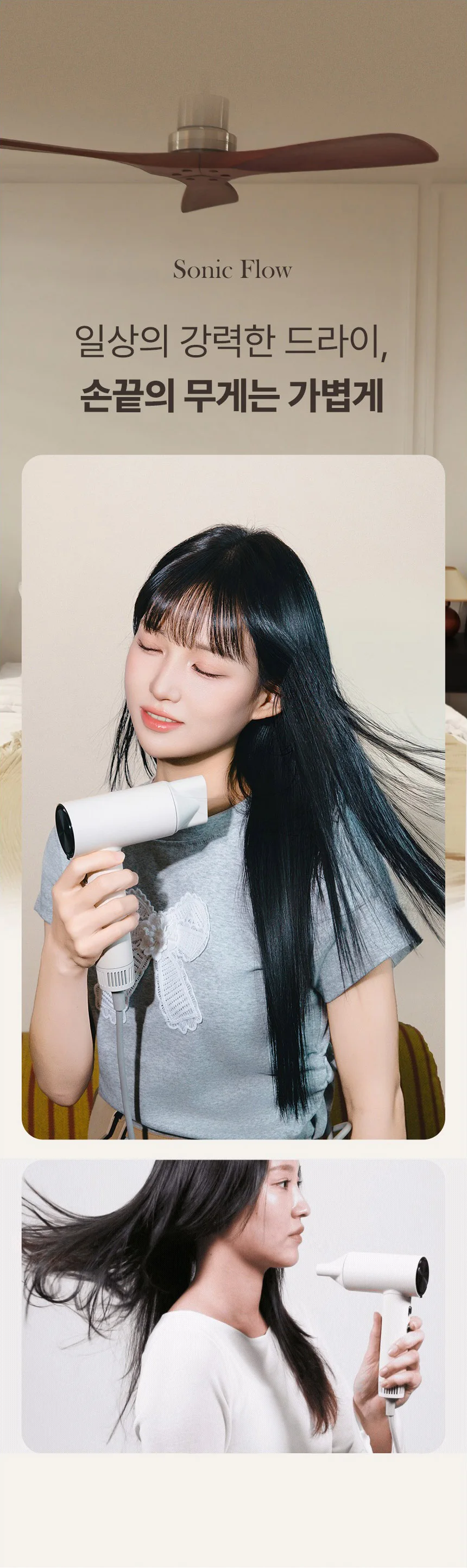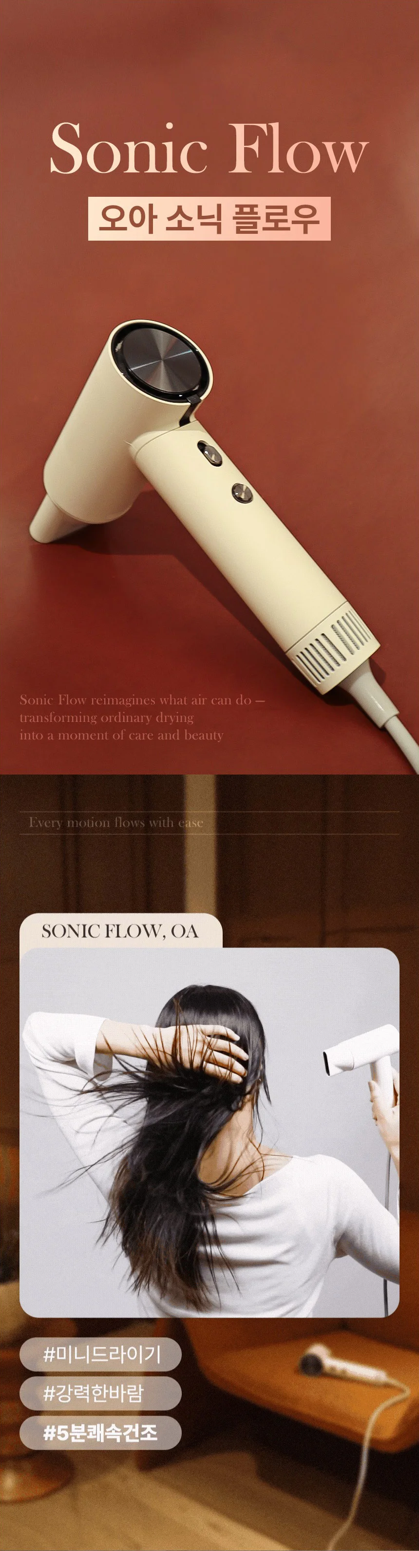 오아 소닉플로우 미니 드라이기 고속 BLDC 헤어 드라이어 음이온 초경량 휴대용 여행용 항공모터