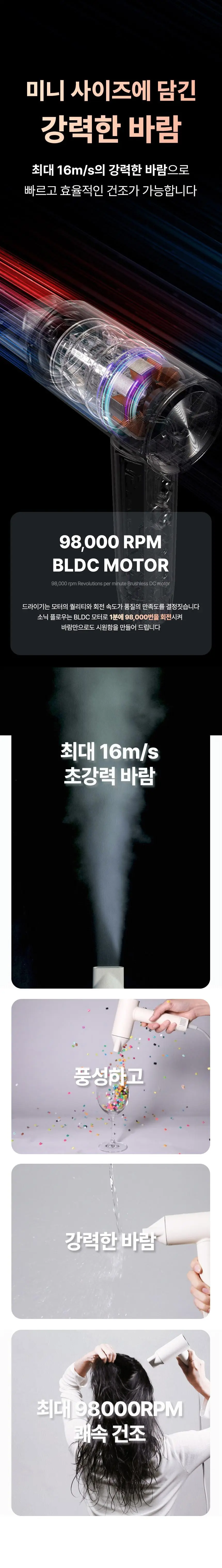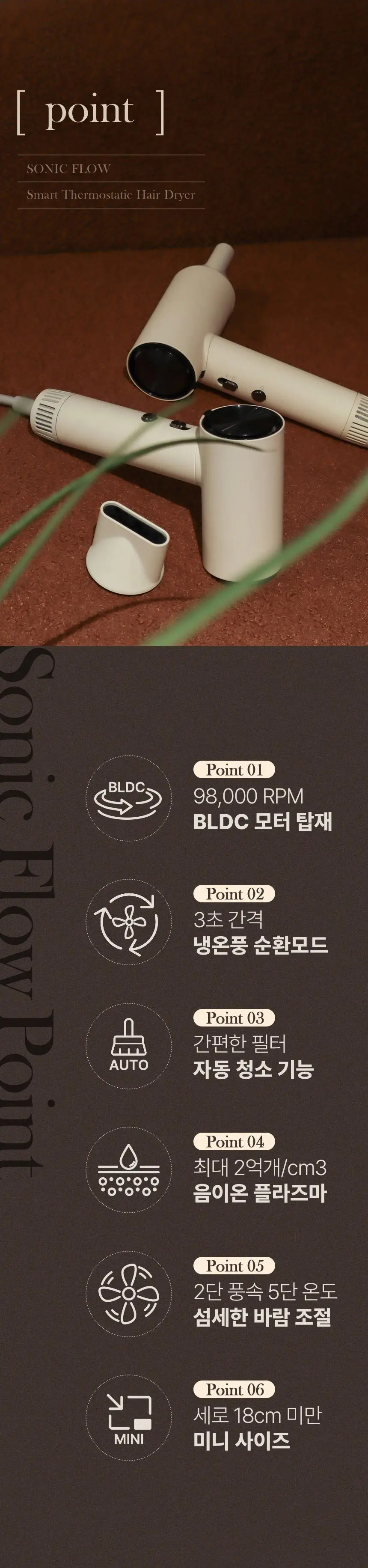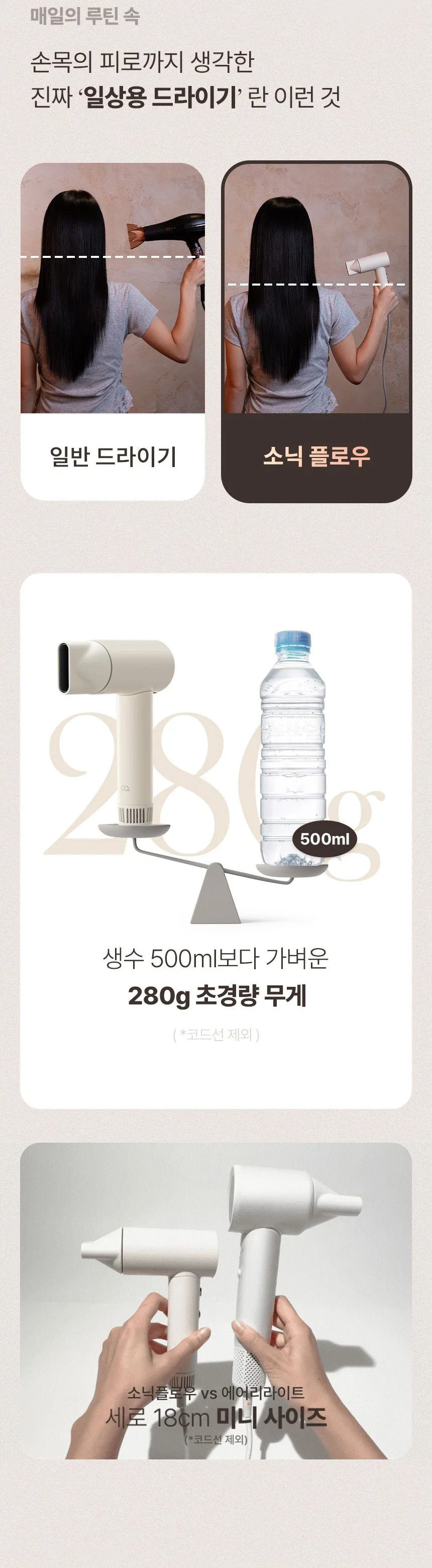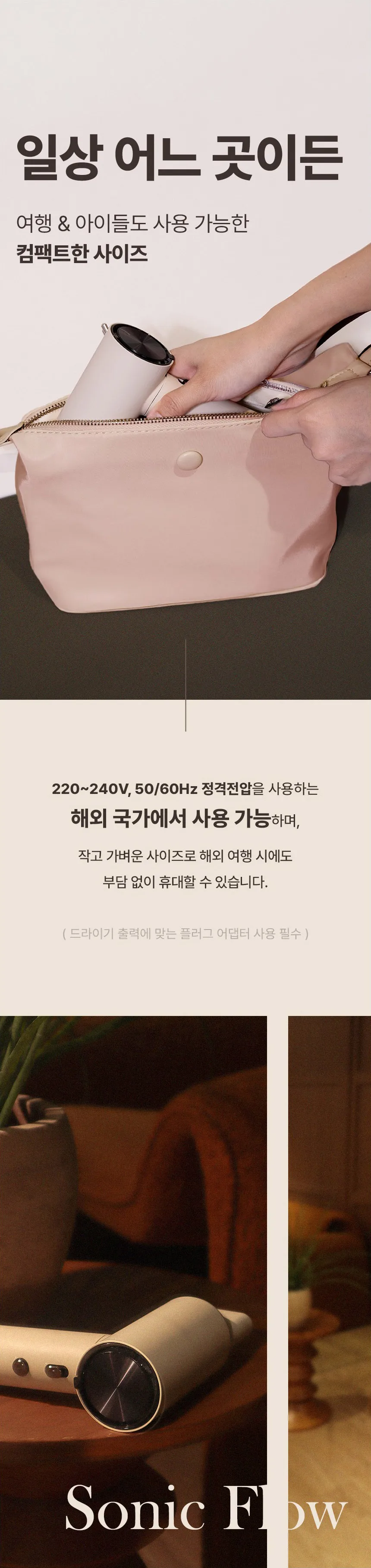 오아 소닉플로우 미니 드라이기 고속 BLDC 헤어 드라이어 음이온 초경량 휴대용 여행용 항공모터