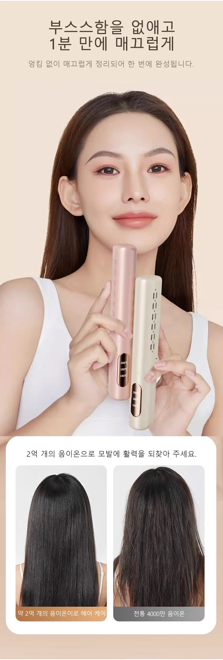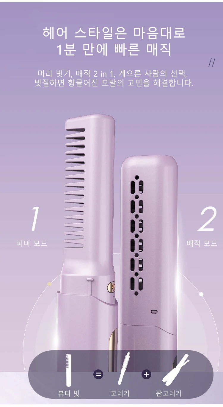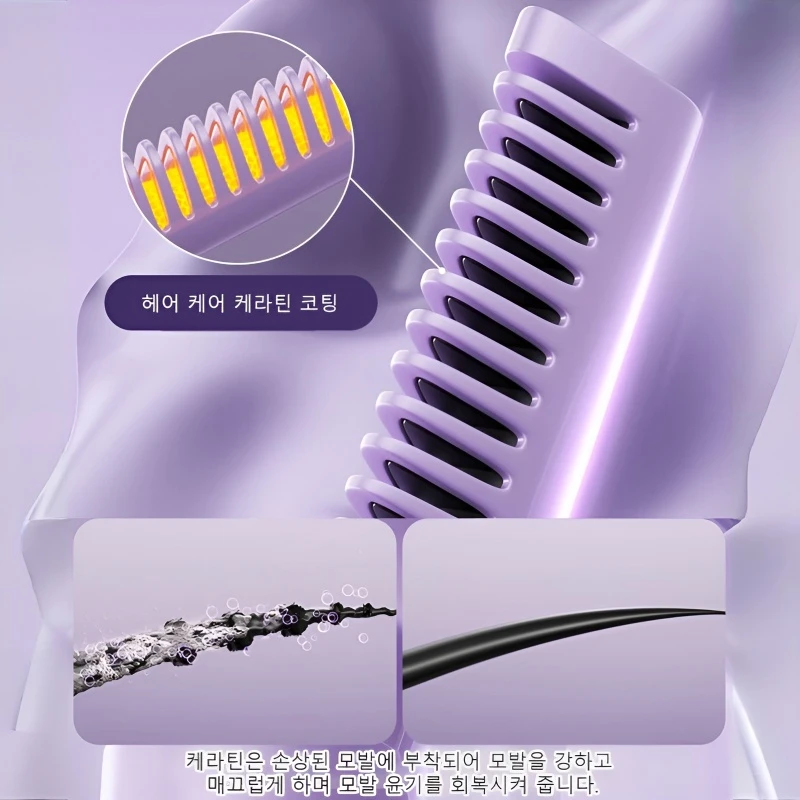 충전식 매직 빗 음이온 헤어케어 뷰티 빗 휴대용 미니 헤어빗 LCD 무선 스트레이트 롤 겸용 음이온 케어 롤 겸용
