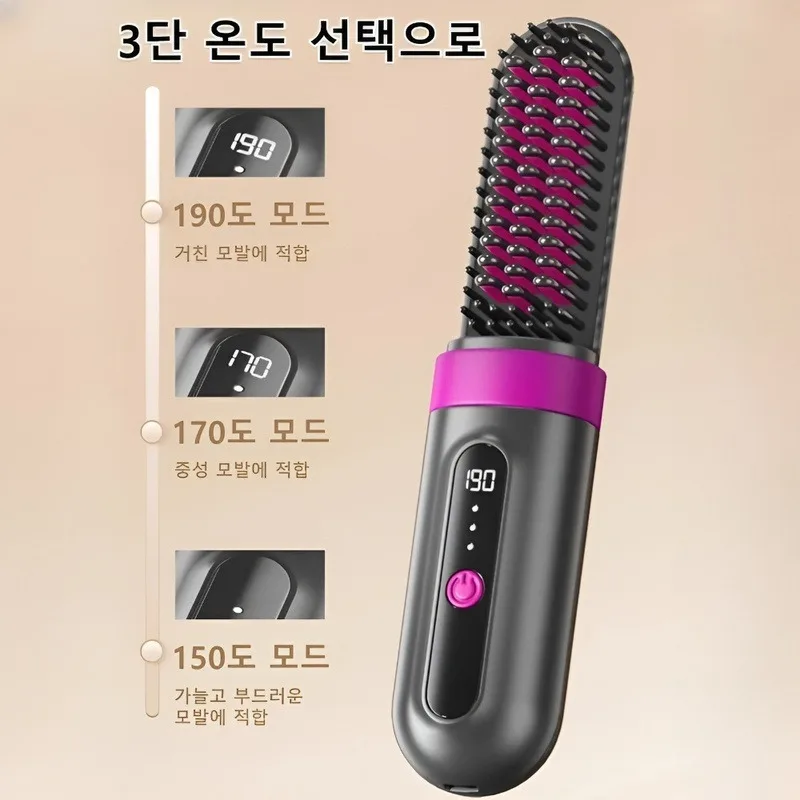 무선 헤어 스트레이트너 핫 빗 휴대용 무선 고데기 무선 세라믹 충전식 빗 세라믹 히팅 전문 전동 브러시