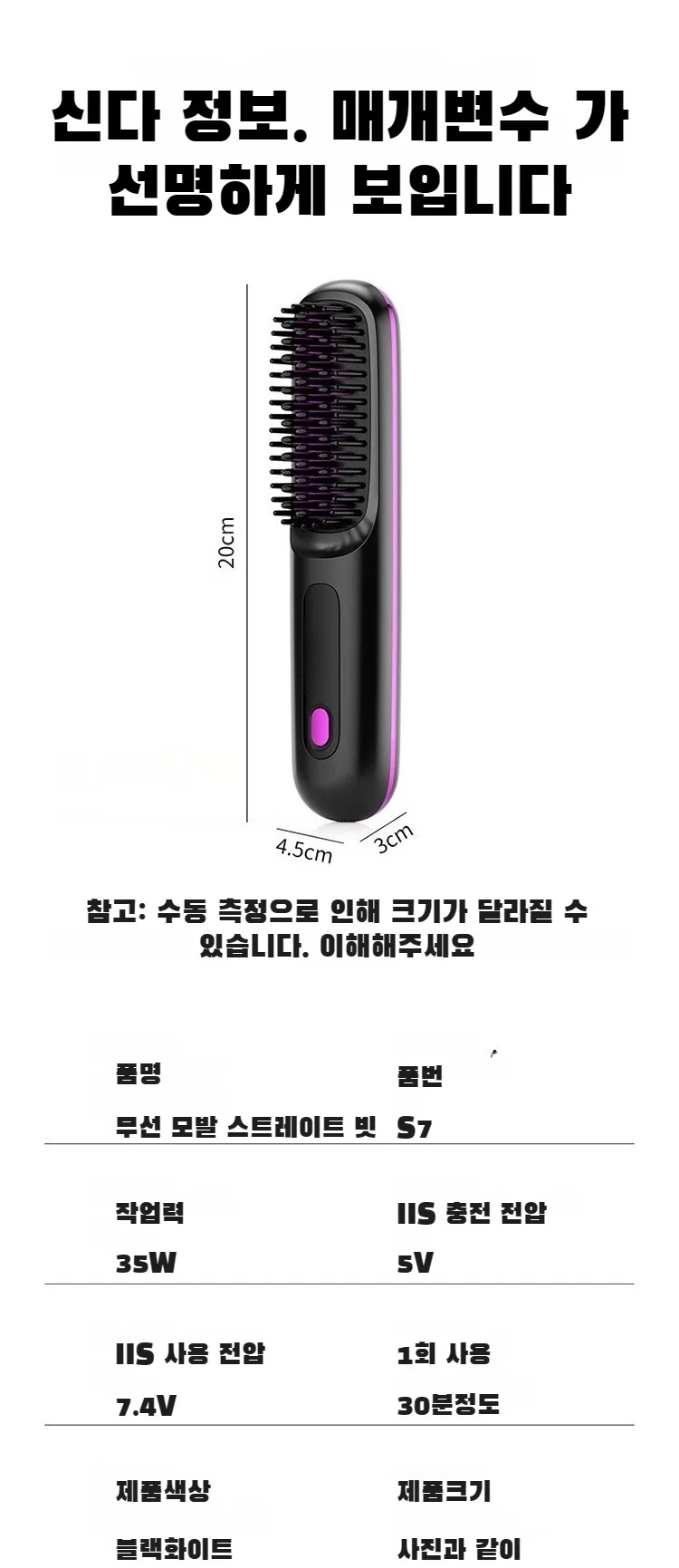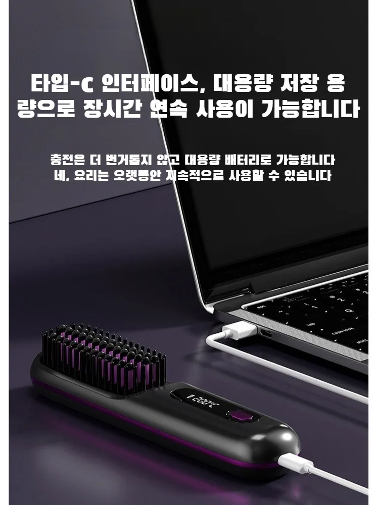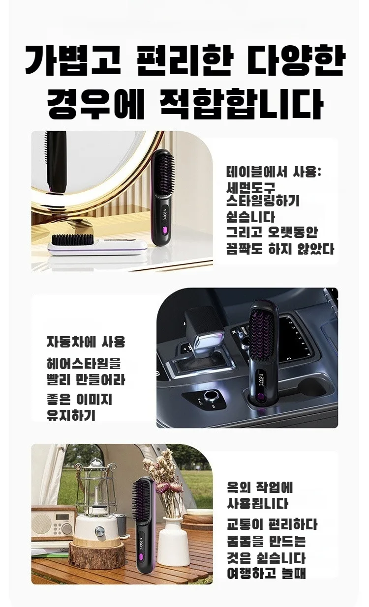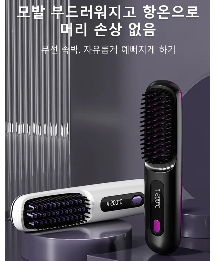 헤어스타일러 액정무선세라믹히팅스트레이트 빗 휴대용 매직기 미니 고데기 무선 헤어 웨이브 음이온 볼륨세라믹 콤 매직기 전문가용