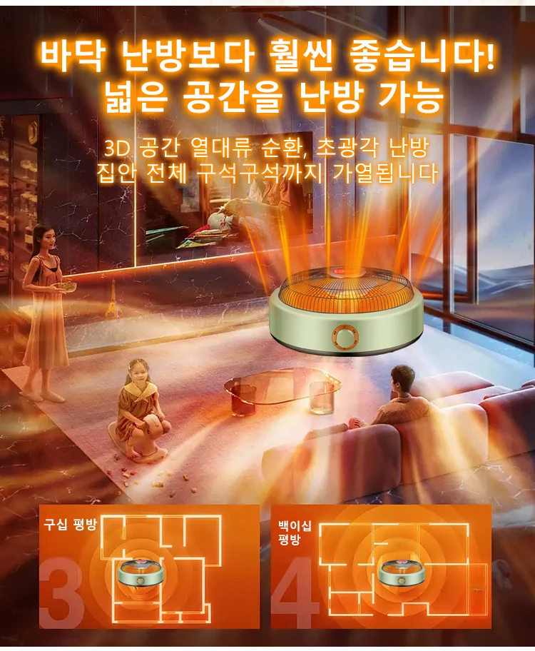 1/1+1온풍기 스탠드형 난방기 거실 침실 급속 그래핀 전기히터 회전식 전기히터 3D 송풍
