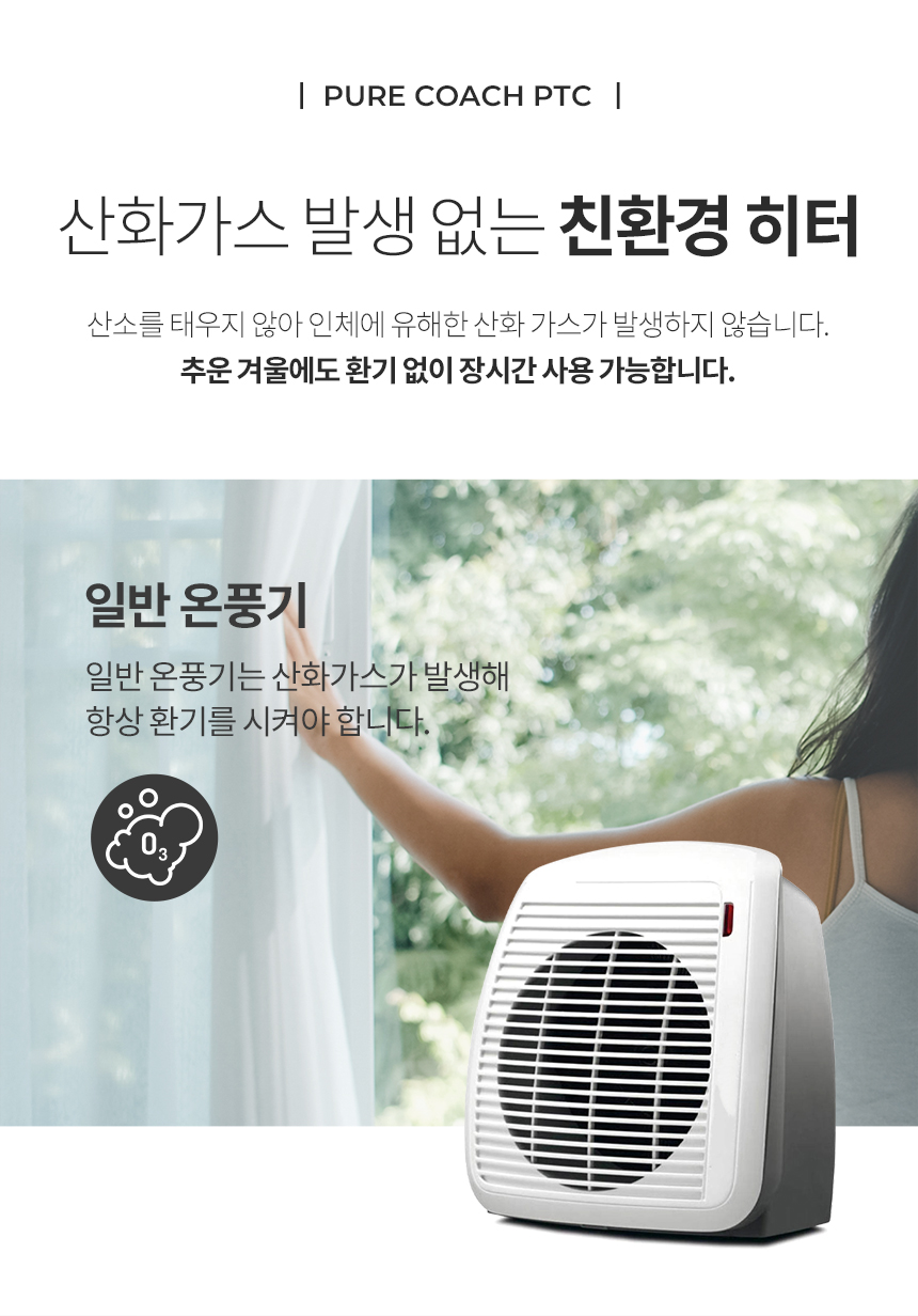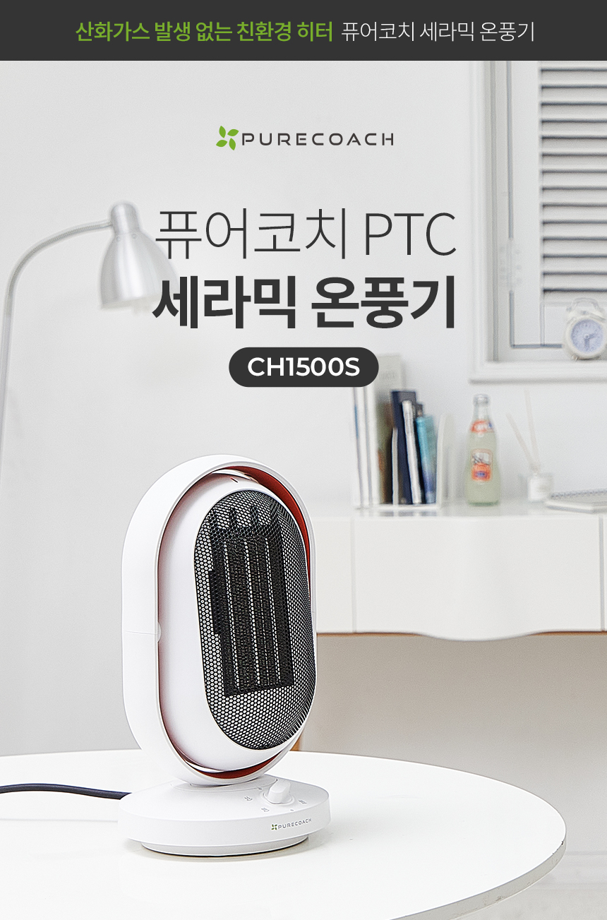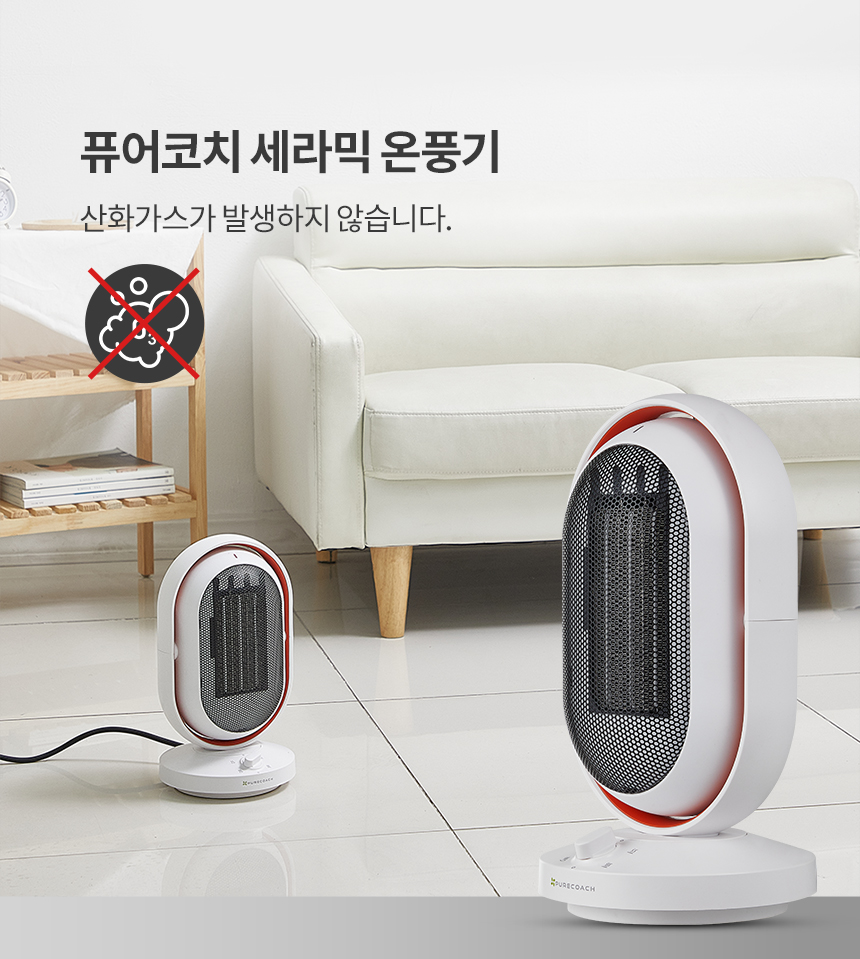 (1+1) 퓨어코치 상하좌우 회전 PTC 미니 전기 온풍기 원룸 욕실 열풍기