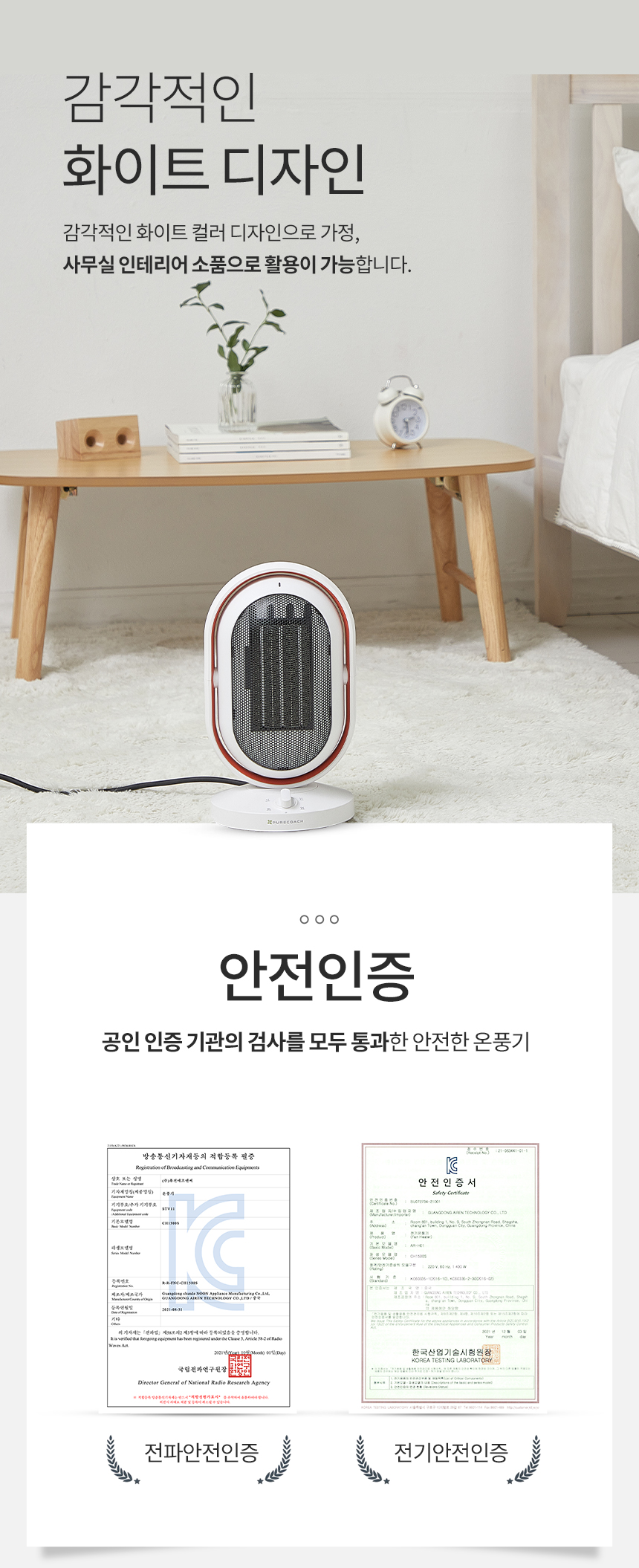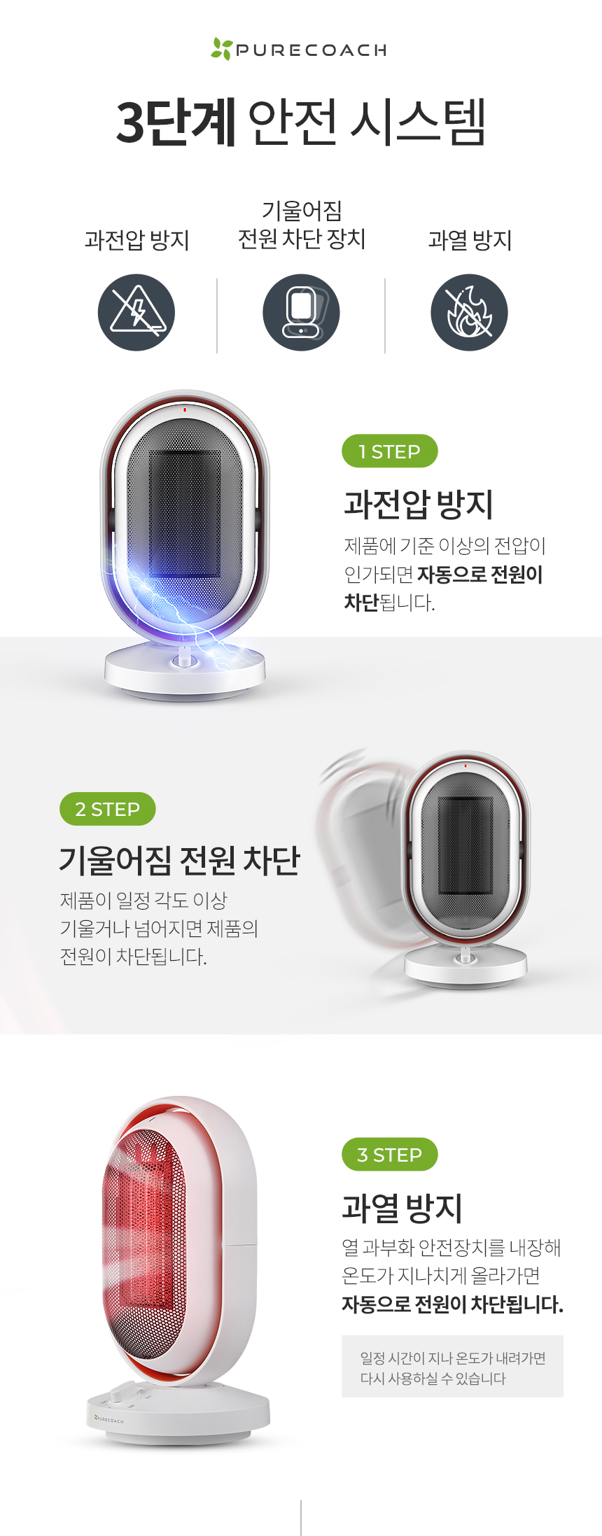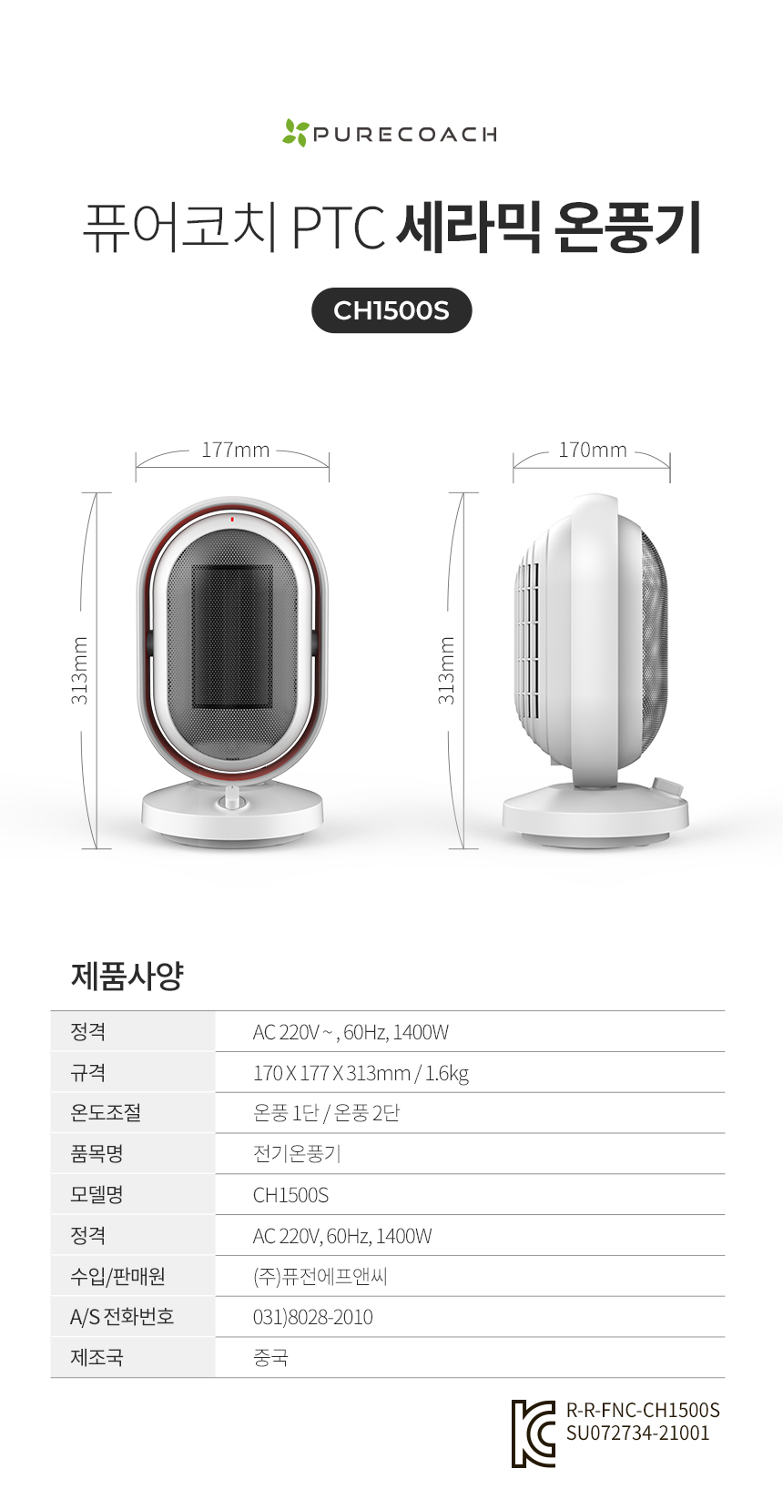 (1+1) 퓨어코치 상하좌우 회전 PTC 미니 전기 온풍기 원룸 욕실 열풍기
