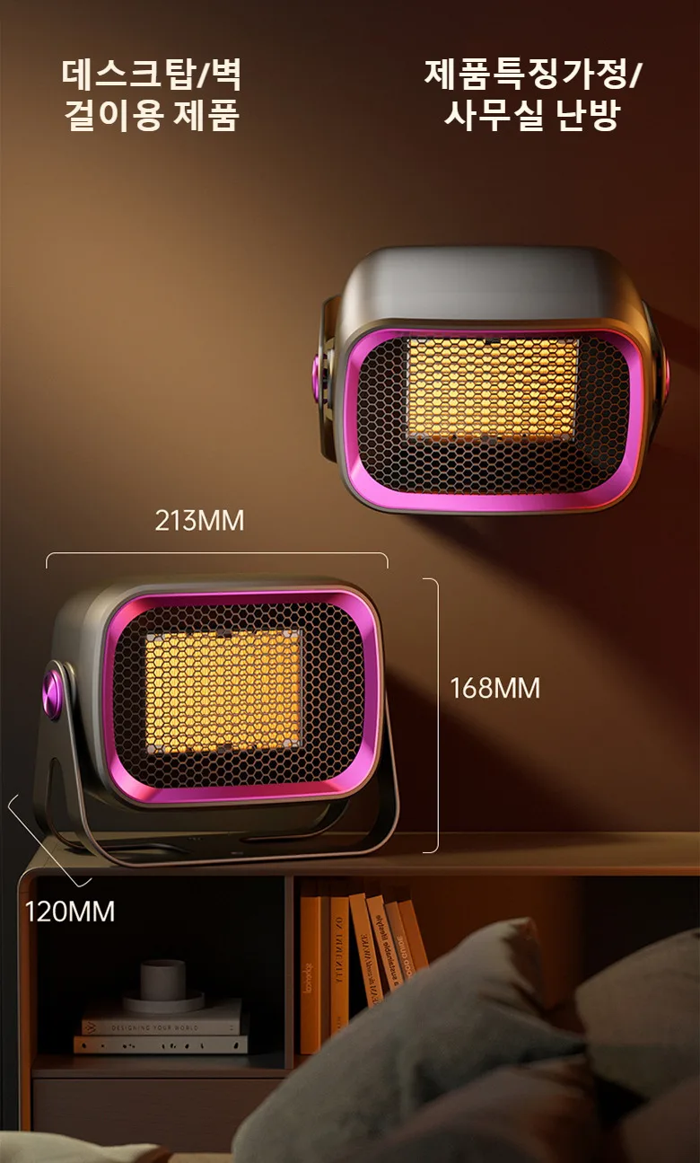1200w 고출력 탁상용 벽걸이 무음 소형 온풍기 욕실온풍기 에너지 절약형 절전 그레이 스타일링 전기히터 편안하고