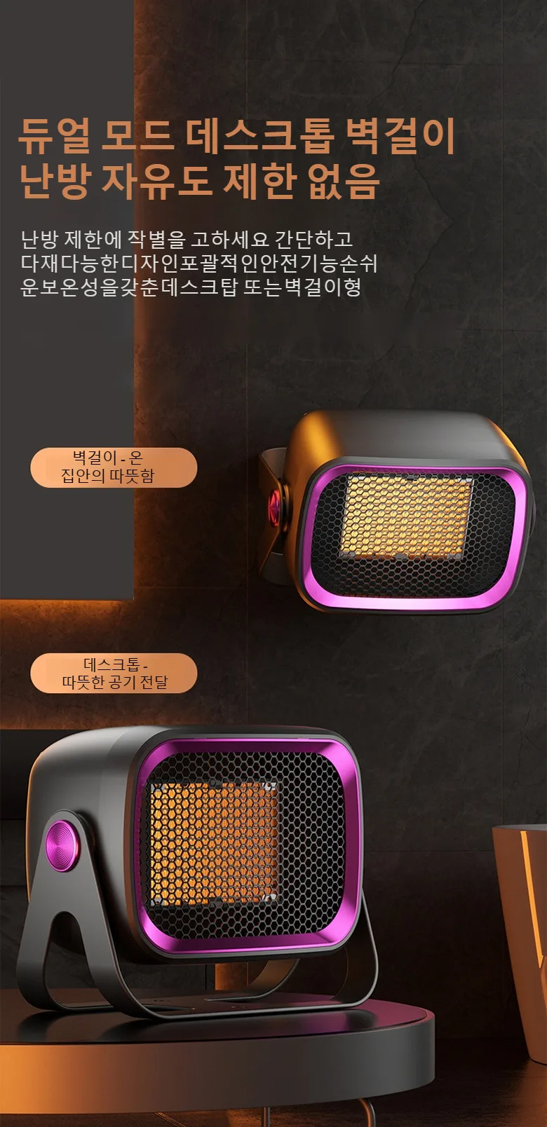 1/1+1온풍기 가정용 벽걸이 난방기 에너지 절약 소형 태양열 사무실 미니 휴대용 전기 히터